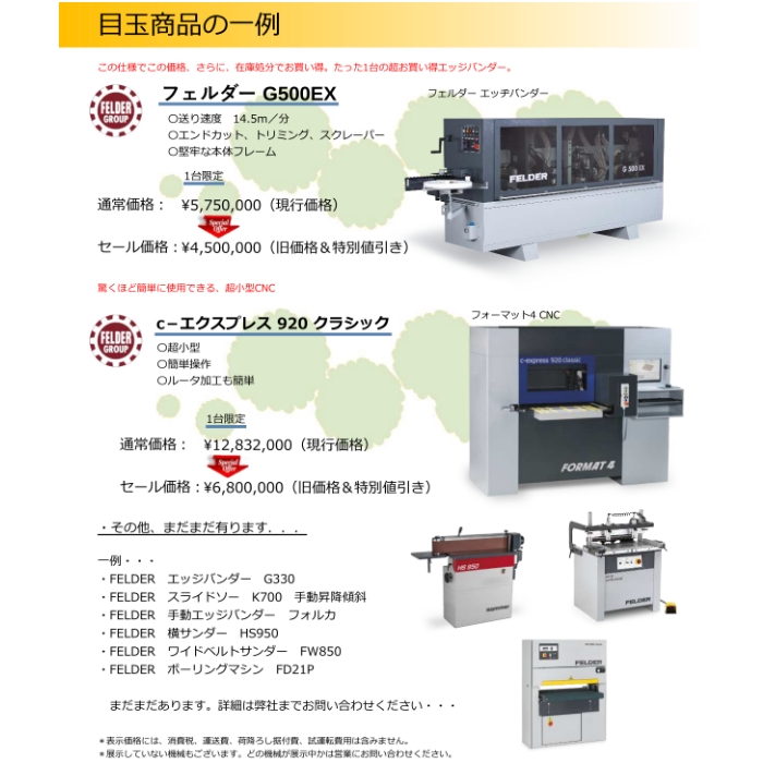 昨今の物価高騰や円安の影響により、欧州製木工機械も価格上昇が続いております。また、人手不足や賃金上昇を背景に、省力化設備の重要性もますます高まっています。