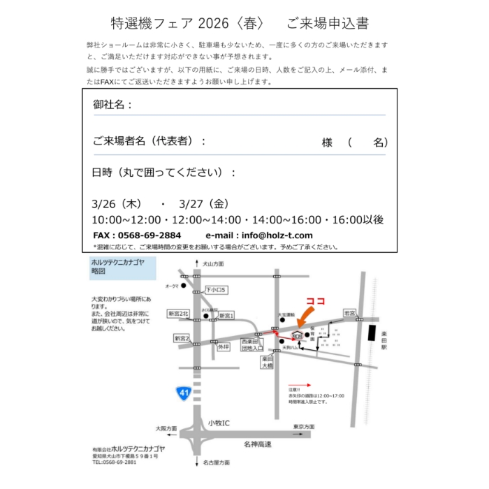 - 場所 : 有限会社 ホルツテクニカナゴヤ ショールーム