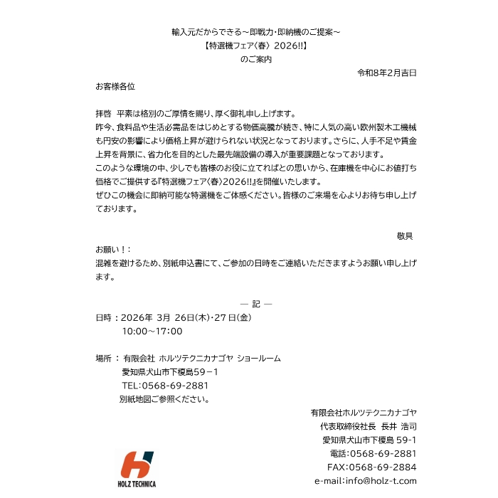 特選機フェア<春>2026:~即戦力・即納機のご提案~