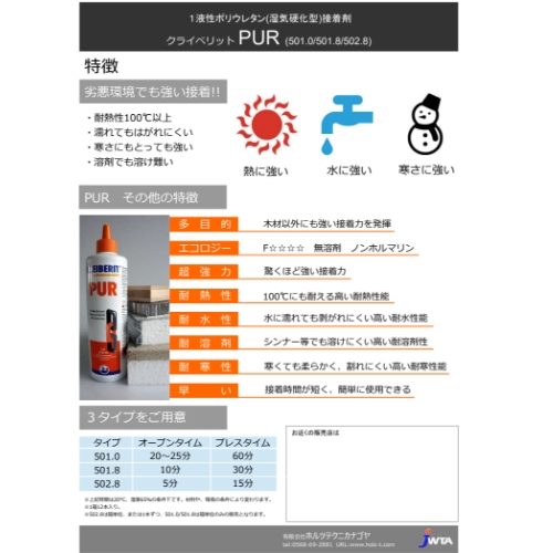 1液性PUR接着剤:クライベリット 501.0 / 501.8 / 502.8